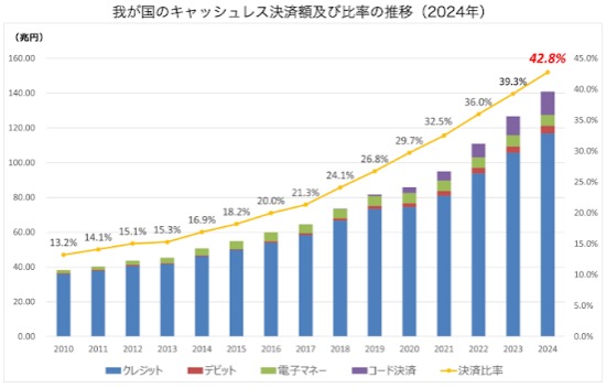 • 2024年のキャッシュレス決済比率は42.8%で前倒しで目標を達成したことになる