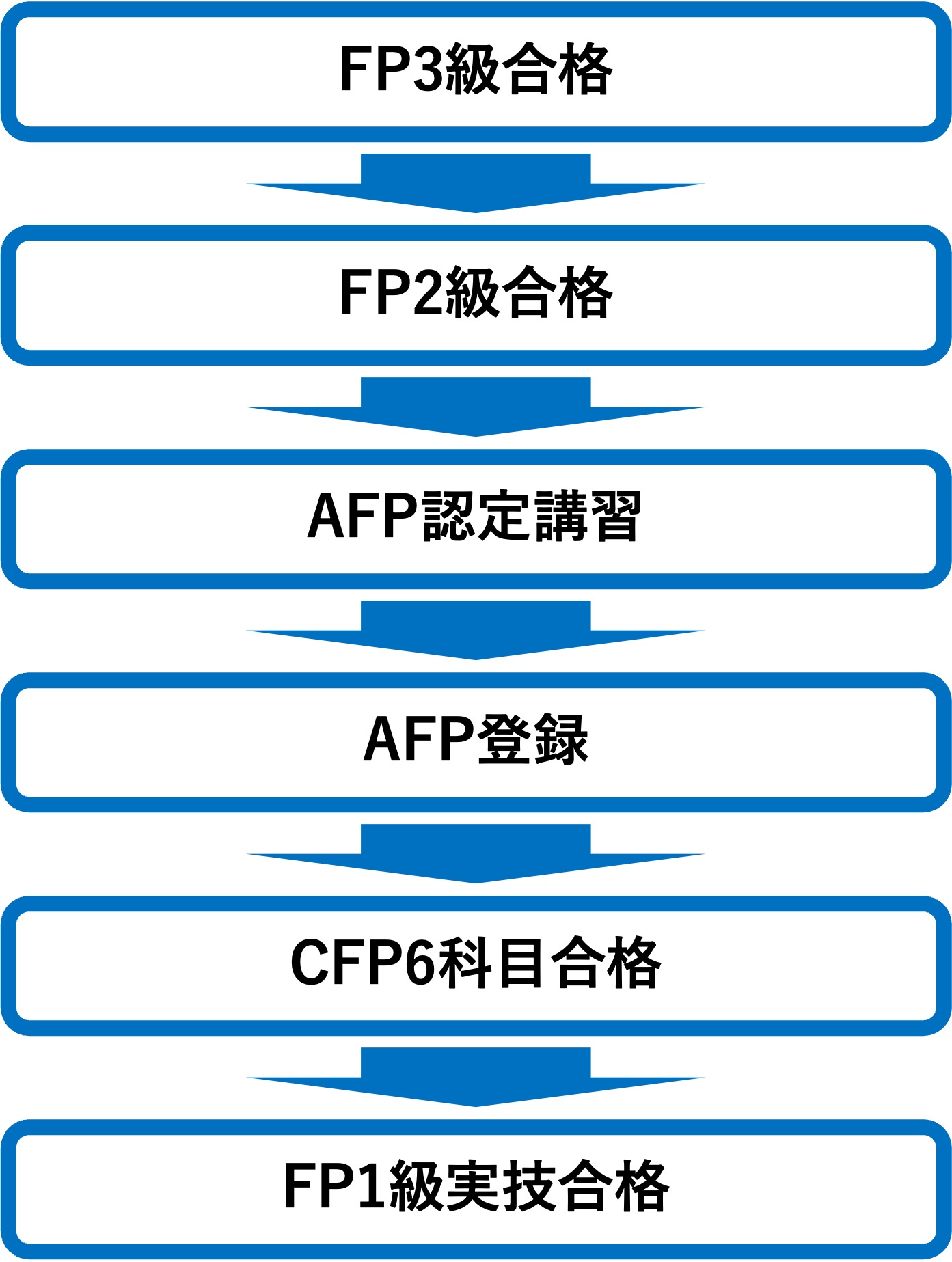 CFP6科目合格すればFP1級の学科試験を免除され、実技試験のみの合格で1級に辿り着けます。CFP6科目合格後、CFP登録には実務経験が必要なので諦めていたのですが、実務経験に代わるみなし実務研修という研修を受けることで登録可能であることがわかり、結果的にはCFPも登録させていただきました。