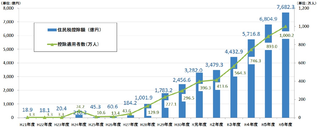 ふるさと納税による住民税控除額・控除適用者数
