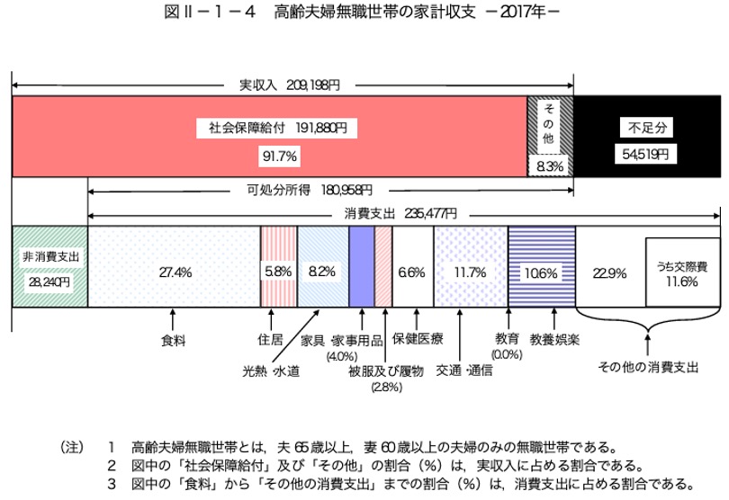 高齢夫婦無職世帯の家計収支 (2017年)
