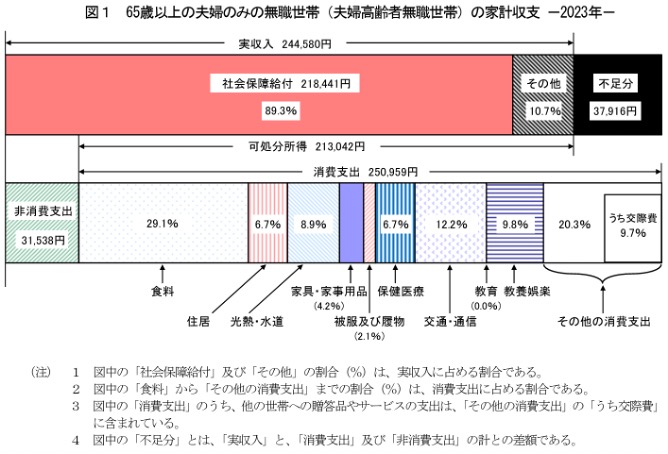 高齢夫婦無職世帯の家計収支 (2023年)