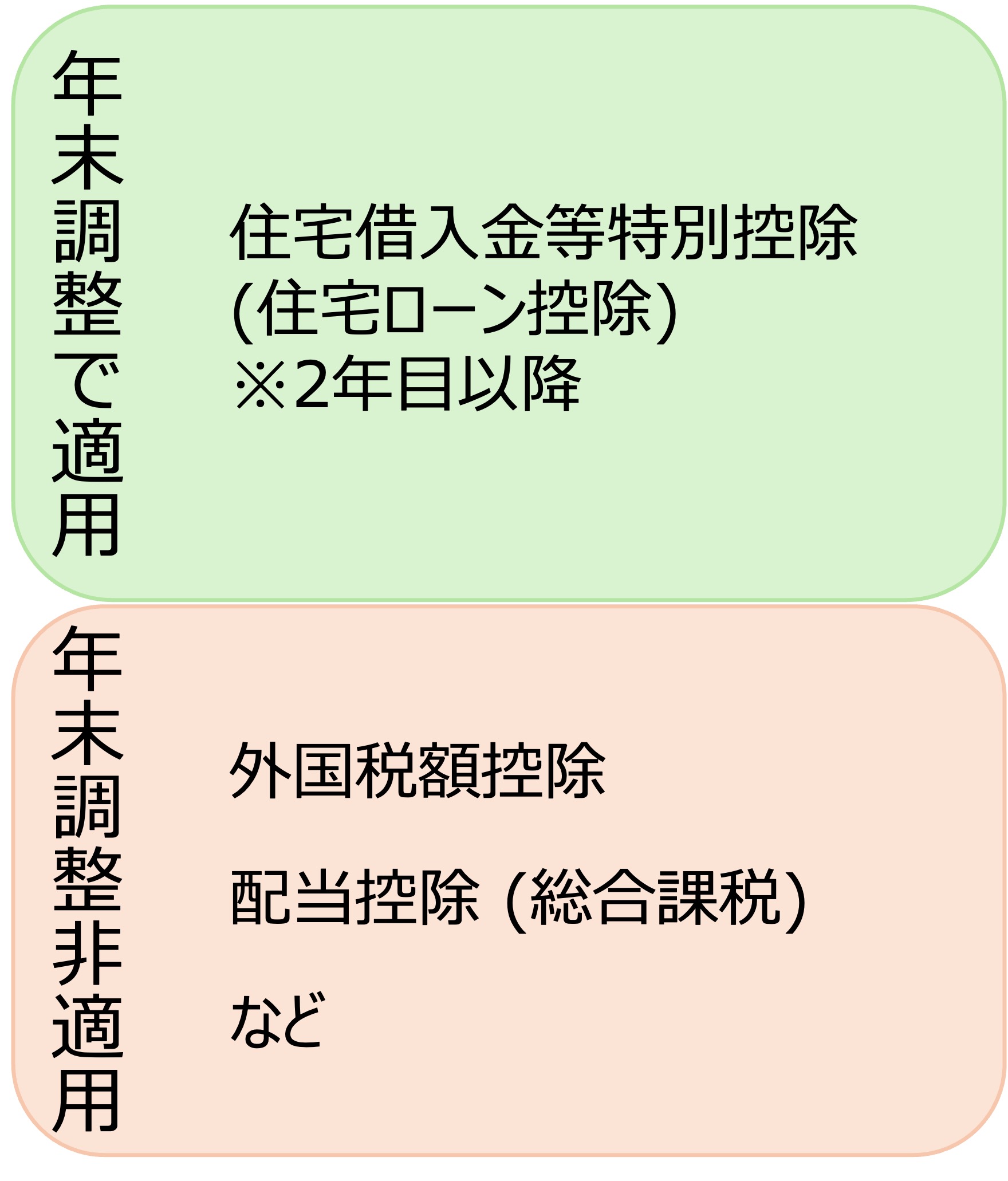 年末調整で適用される所得控除はたくさんありましたが、税額控除の方は2年目以降の住宅借入金等特別控除(住宅ローン控除)のみになります。
