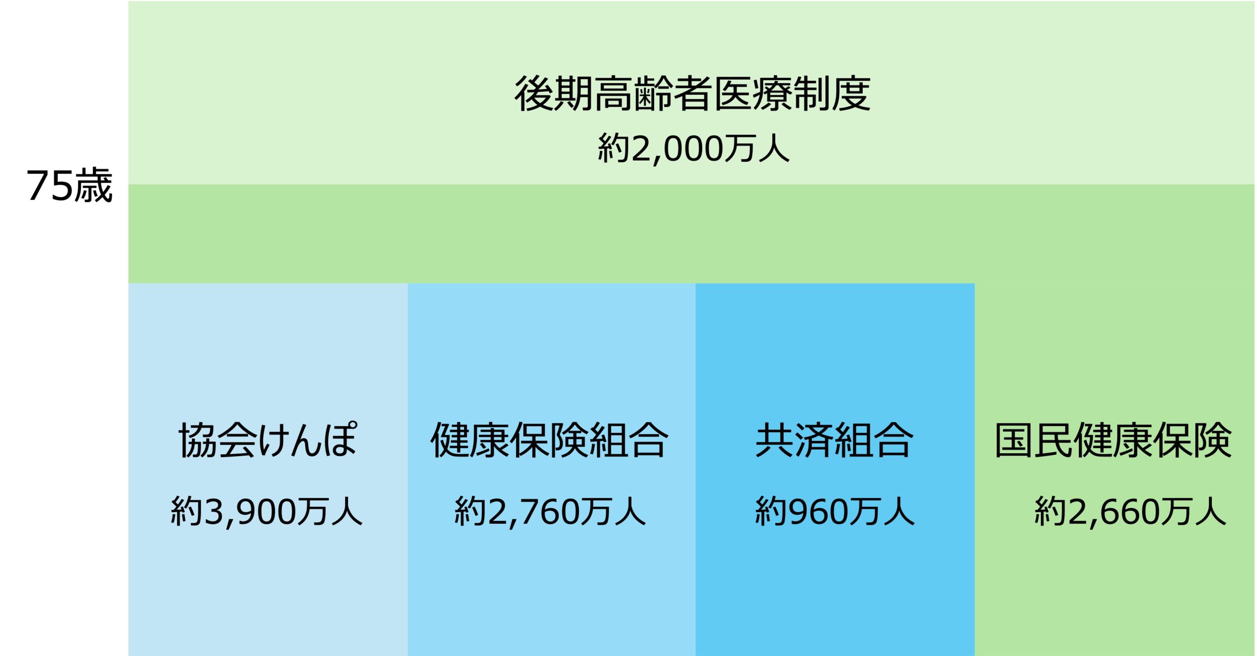 公的医療保険制度とその加入人数をまとめると以下の図1のようになります。