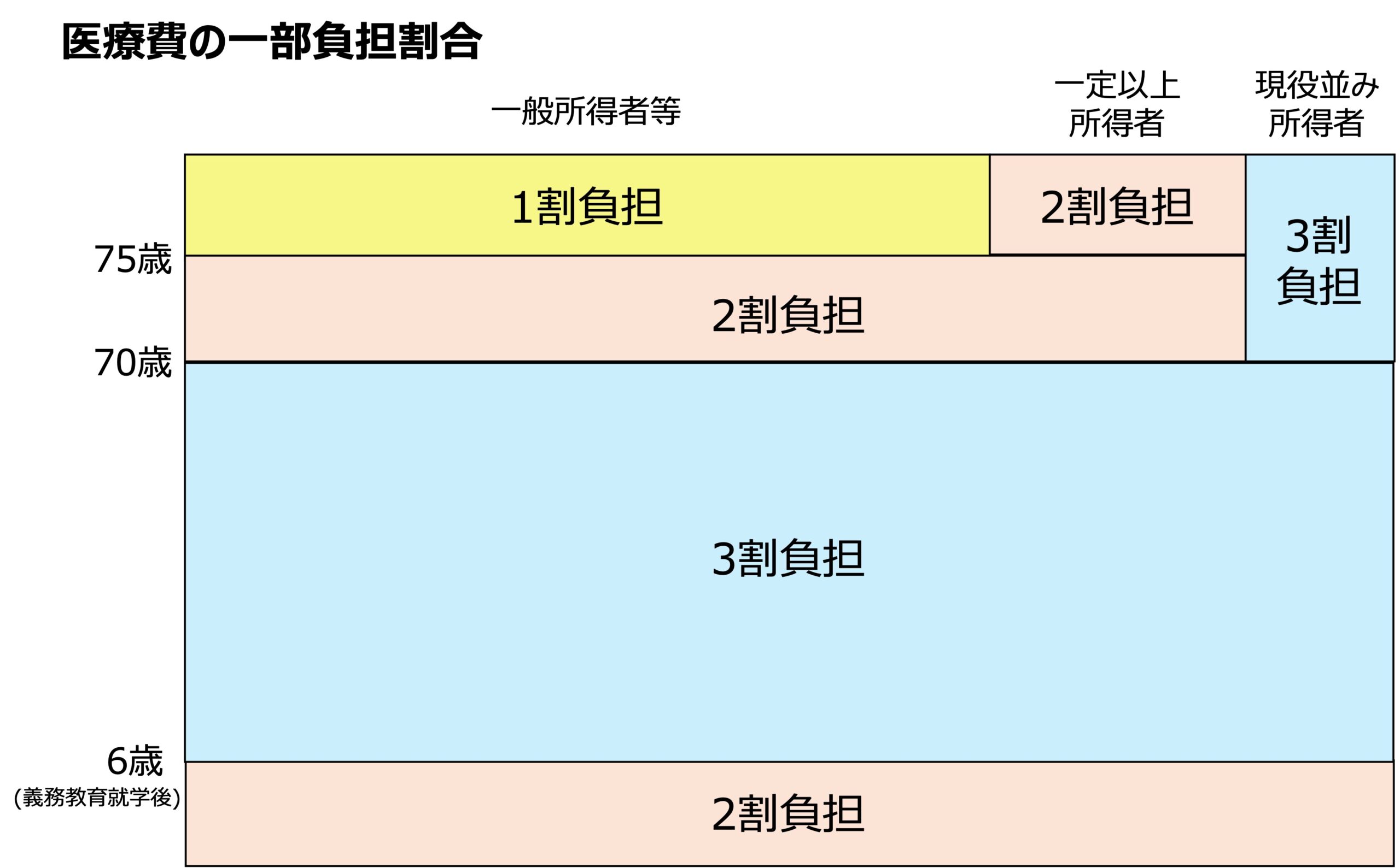 - 70歳未満は3割負担(6歳(義務教育就学前)未満は2割負担)